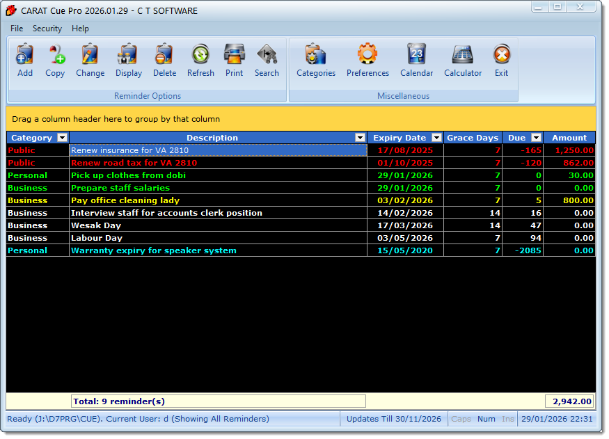- Locate CARAT Cue Personal in the list (It is displayed in red)