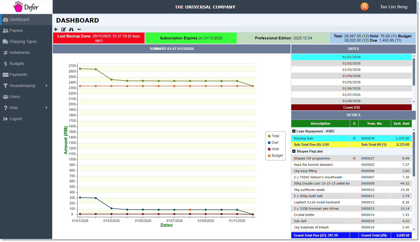 CARAT+ Defer is a web application that tracks all your fixed expenses and budget amounts. This gives you a heads-up on all possible expenses so that you have the ability to manage them efficiently to ensure that they do not exceed a fixed total budget for all of them.