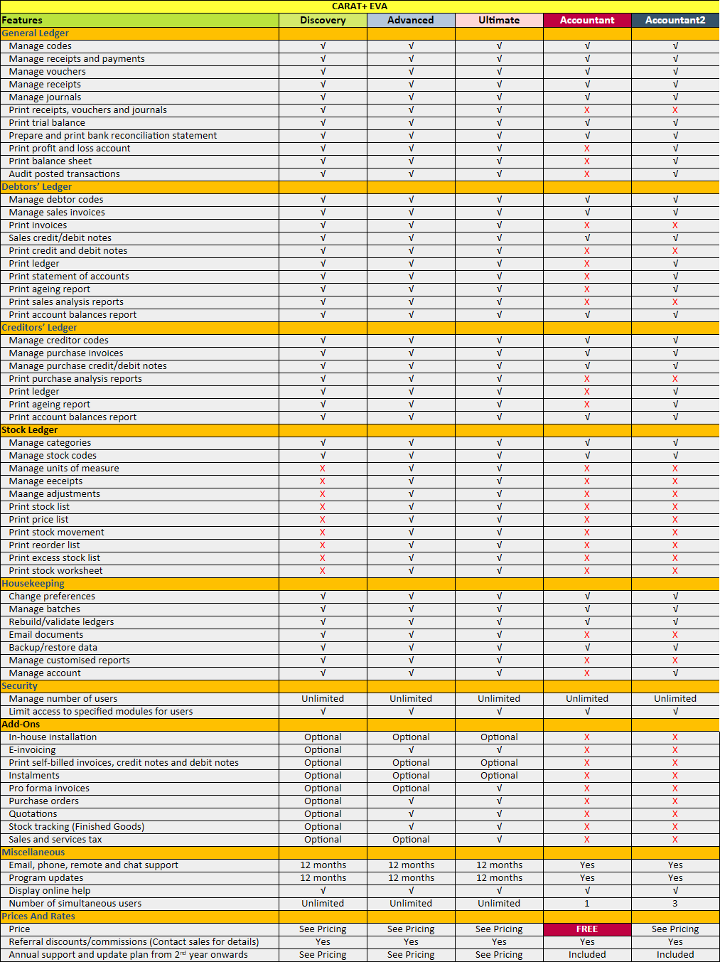 CARAT+ EVA starts from RM499.00 with everything you need to keep your accounts in order and you get one year's worth of support and program updates.