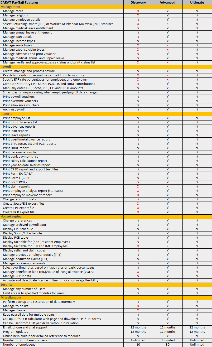 - Export EPF, Socso/EIS, Form E and PCB data for online submission